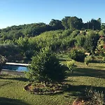 庭園の景色を見渡すホテル Aux Coteaux D'Aussac L'Honor-de-Cosには,テラスと温水プ-ルがあります.